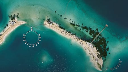 The area accommodates facilities including hotels (14), over-water villages, and pools. For the hotels, the cooling necessary for comfort, domestic water supply, and pools will be provided through a primary and secondary network distributing chilled water across the area.